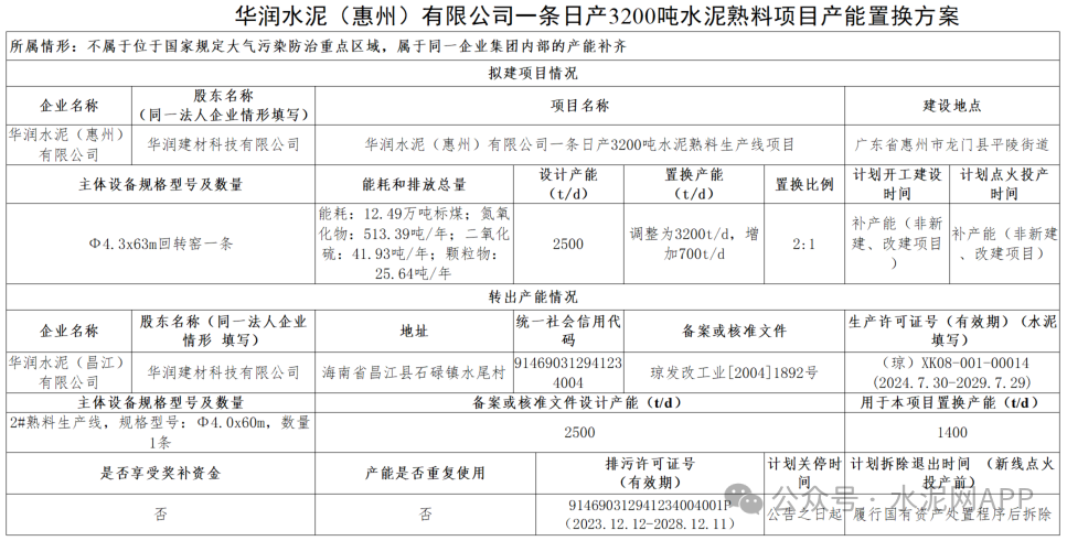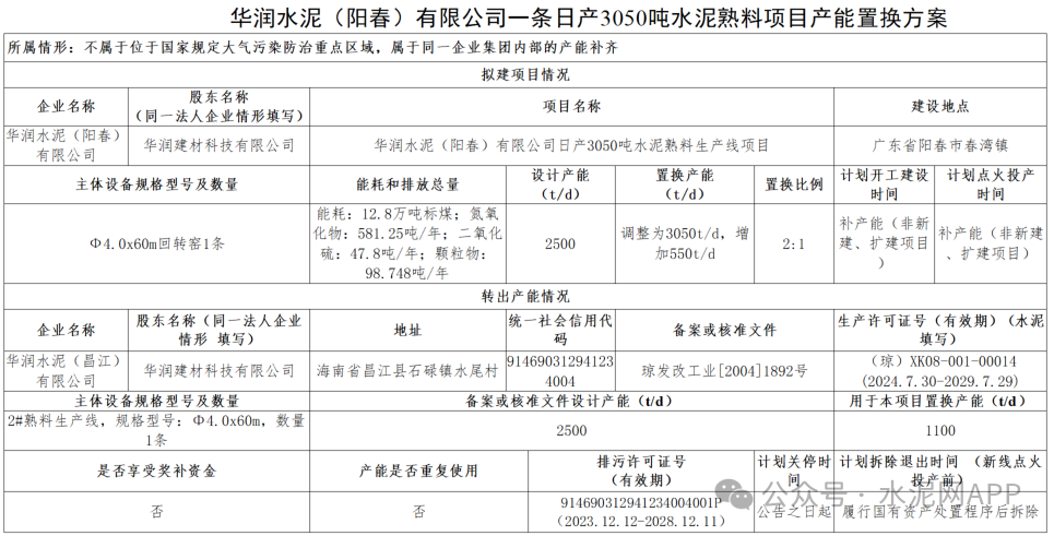 近日,廣東工信廳發(fā)布兩則華潤(rùn)水泥補(bǔ)充熟料產(chǎn)能方案公告。置換方案顯示,華潤(rùn)水泥(昌江)公司退出一條2500t/d熟料生產(chǎn)線,其中1100t/d產(chǎn)能用于華潤(rùn)水泥(陽春)公司一條2500t/d熟料線,補(bǔ)齊后產(chǎn)能3050t/d,置換比例2:1;剩余1400t/d產(chǎn)能用于補(bǔ)充華潤(rùn)水泥(惠州)公司一條2500t/d熟料線,補(bǔ)齊后產(chǎn)能3200t/d,置換比例2:1。